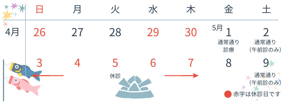ゴールデンウィーク期間中の診療を、下記のとおりとさせていただきます。