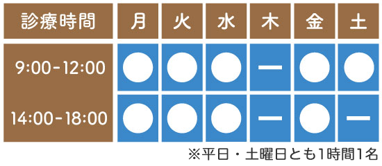 休診日/木曜日・土曜日午後・日曜・祝日
